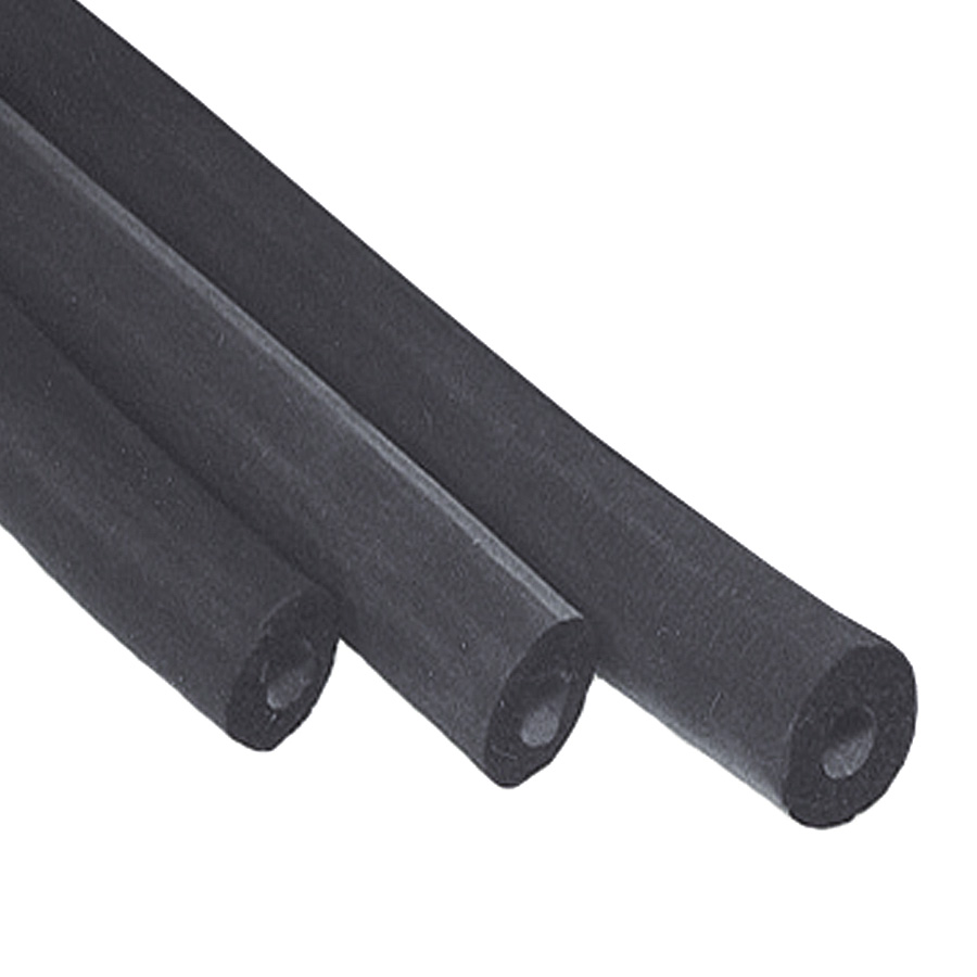 Useful for building up the handle of many items. Black closed cell foam with 3/8" (9mm) hole and 1.25" (3cm) outside. 36" (91cm) length. May be cut to size for replacement grips on soft handle cutlery.
