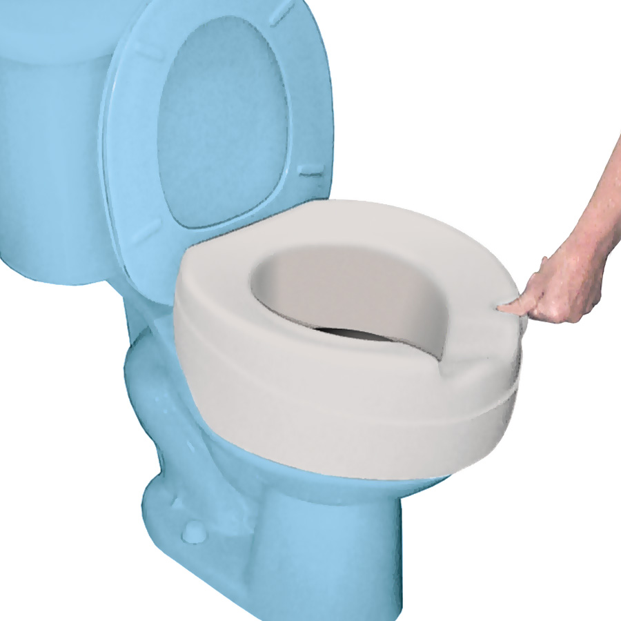 A soft toilet seat for those that need relief from pain. It attaches to toilet bowls by compression, providing warm, soft, padded comfort. In most situations the existing toilet seat can be lifted up to remain installed. The seat is pressed down and onto the bowl and easily lifts off again.