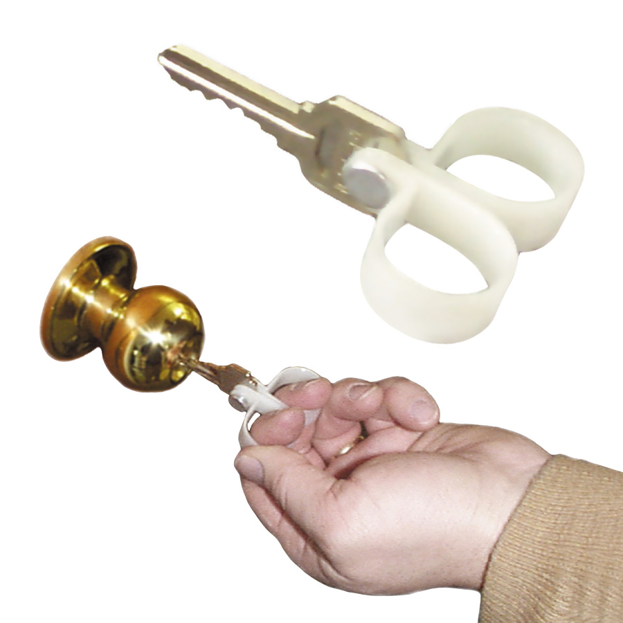 This kit provides large plastic finger loops and the necessary screws to assemble handles on two keys. Suited for people with limited manual dexterity or finger strength. 2 pair per pkg. NOW EXPANDABLE TO 3/8" TO ACCOMMODATE MOST AUTO KEYS!