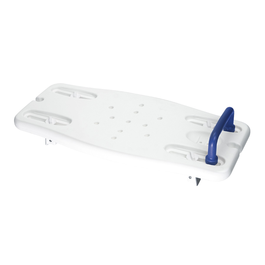 The "Mermaid" Bath Board adjusts easily from 17 to 28 in (45 to 71 cm) to fit most bathtubs. It has a wide comfortable contoured seating area which makes it easier and safer to turn and move on the board while getting in and out of the tub. The textured surface is slip resistant and there are drain holes help to keep water off the seating area. The total plastic construction is corrosion free and easily cleaned. Anti-slip rubber pads improve the safety and protect the tub surface. Comes complete with safety handle. Adjusts and assembles easily, no tools required, instructions included.