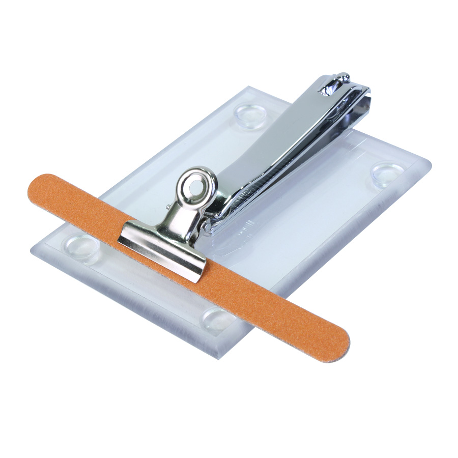 A larger nail clipper with emery boards to assist those who may have difficulty with the smaller nail clipper. The emery board is held in place with a spring clip and non-slip pads hold the Lexan base in place to facilitate one hand usage. Two emery boards are included with each set.