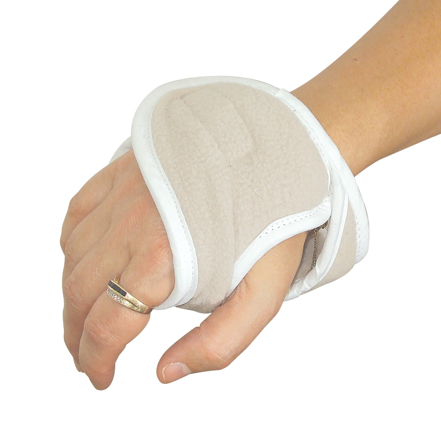 Designed to protect the skin in the palm of the hand in the presence of a permanent hand contracture. Manufactured of soft fleece covering with foam padding in the palm area. The palm protector slips easily over the thumb and is fastened using a hook & loop closure. Fits both left and right hand. One size fits most. Machine washable.