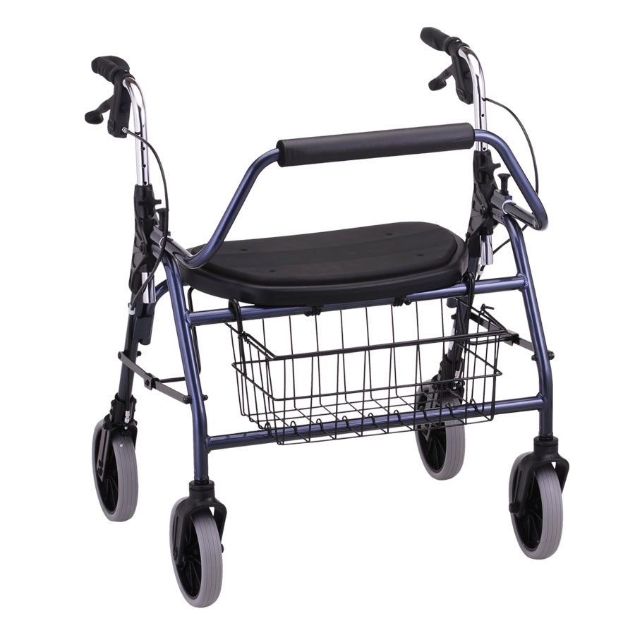 The Titan Bariatric Rollator is designed with durable 8" wheels, and extra wide seat with comfortable padding. It also includes a handy front basket for storing your personal belonging and a removeable back. Seat height: 22", Max weight: 500 lbs., Colour: Blue