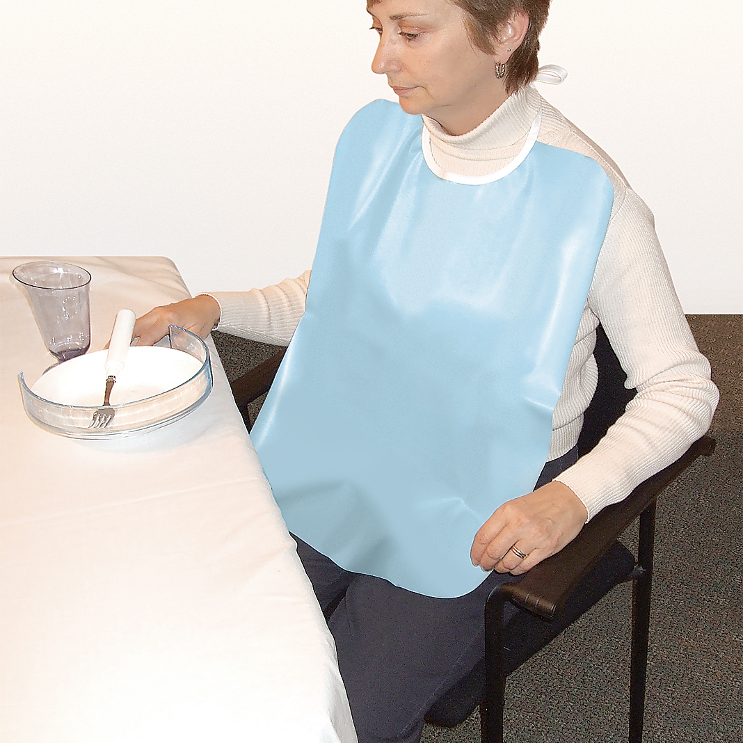 A simple vinyl clothing protector that measures 16.5" x 23" (42cm x 58cm).