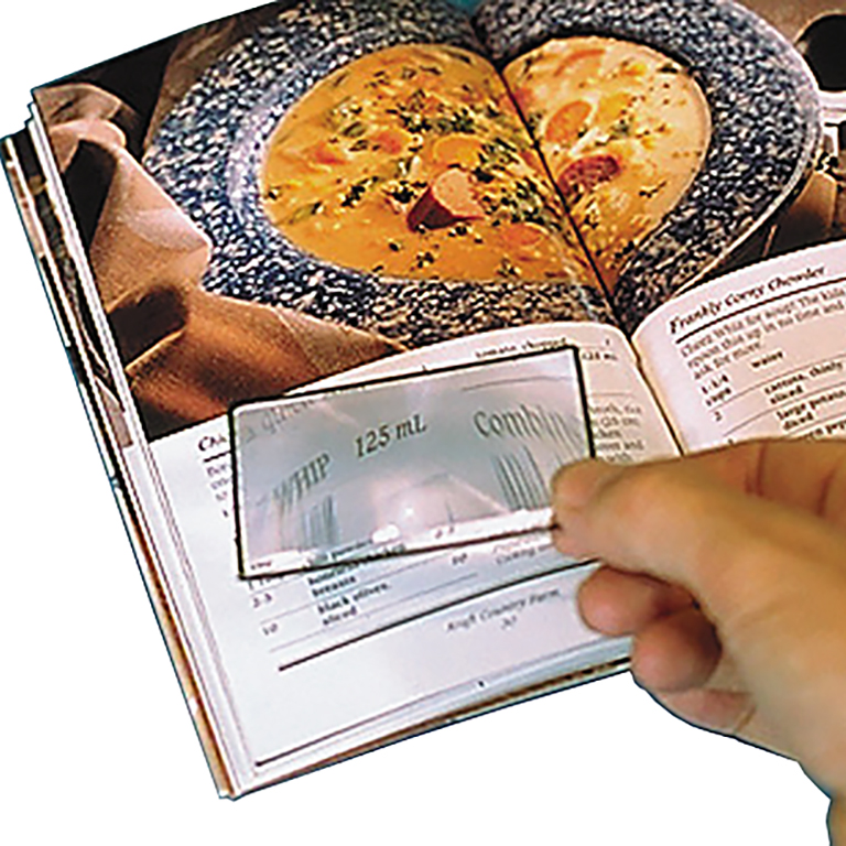 Made of a flexible plastic, this magnifier is the size of a credit card and fits in your wallet so you will always have a magnifier when you need one. 2X magnification.