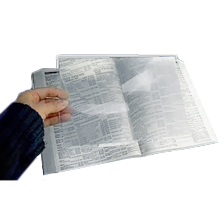 A large pliable sheet magnifier. With this item you can enlarge a whole page of print at once. Ideal for anyone with minor vision problems.