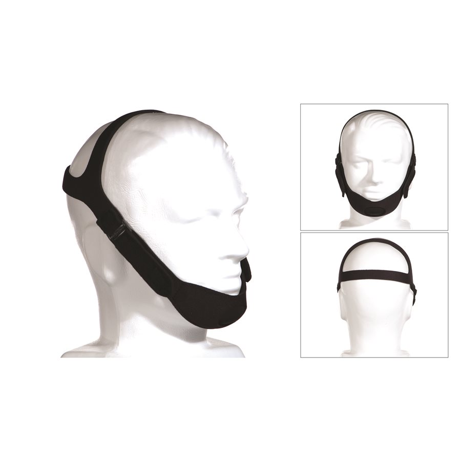 The Halo Style Chinstrap is a one size fits all chinstrap designed and manufactured by AG Industries. It has a circular "Halo" style headgear which lies on the top/back of the head and is adjustable around the ears. This is a popular option for CPAP users who find their mouths dropping open at night, causing air to leak.