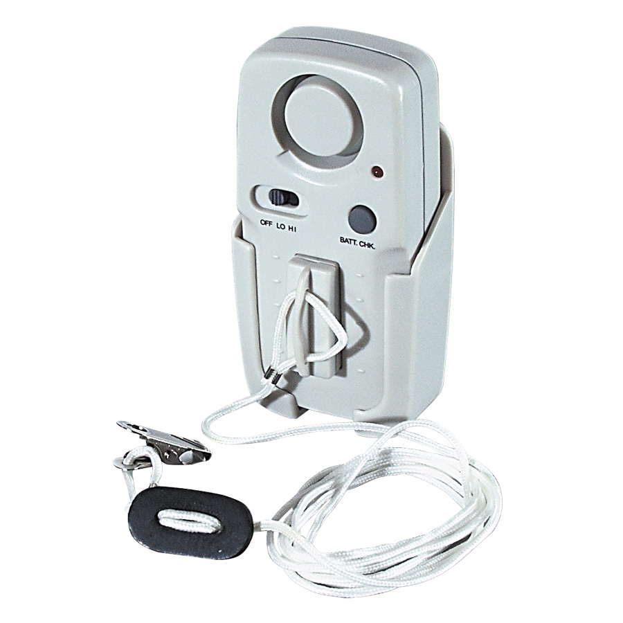 The magnetic pull switch of this versatile patient monitor releases from any direction to signal movement on the part of the patient thereby reducing the risk of a fall. The unit includes a mounting holster that may be secured to a head-board or use its hook and loop fasteners for wheelchair mounting. Cord adjusts from 28" to 58" (71 to 147 cm). Two AAA batteries included.