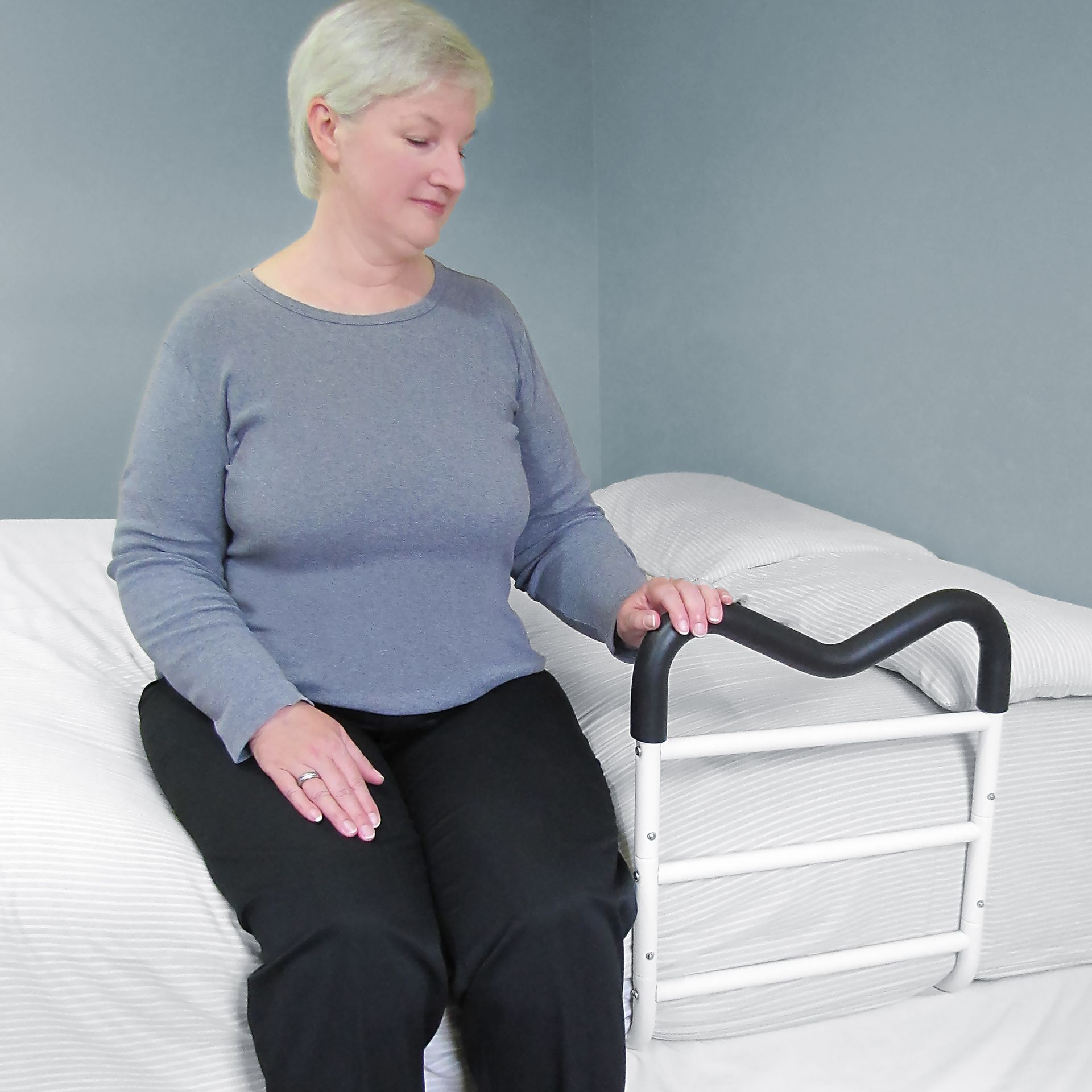 Easy to use and comes with a convenient storage pouch. Easy assembly - For home and travel. Contoured padded handrail (contains no Latex). Helps you sit up, reposition, balance, stand or transfer. Similar to other bedrails in its class.