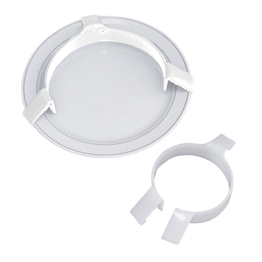 Food bumpers adapt a standard plate into a plate for self feeding similar to an inner lip plate or a scoop plate. The vertical wall provides an area to push food onto your utensil for scooping and aids in keeping the food on the plate. Fits 8" - 11" (20-28cm) plates. This sanitary snap-on food bumper is molded in one piece. Microwaveable. Residential and institutional dishwasher safe.