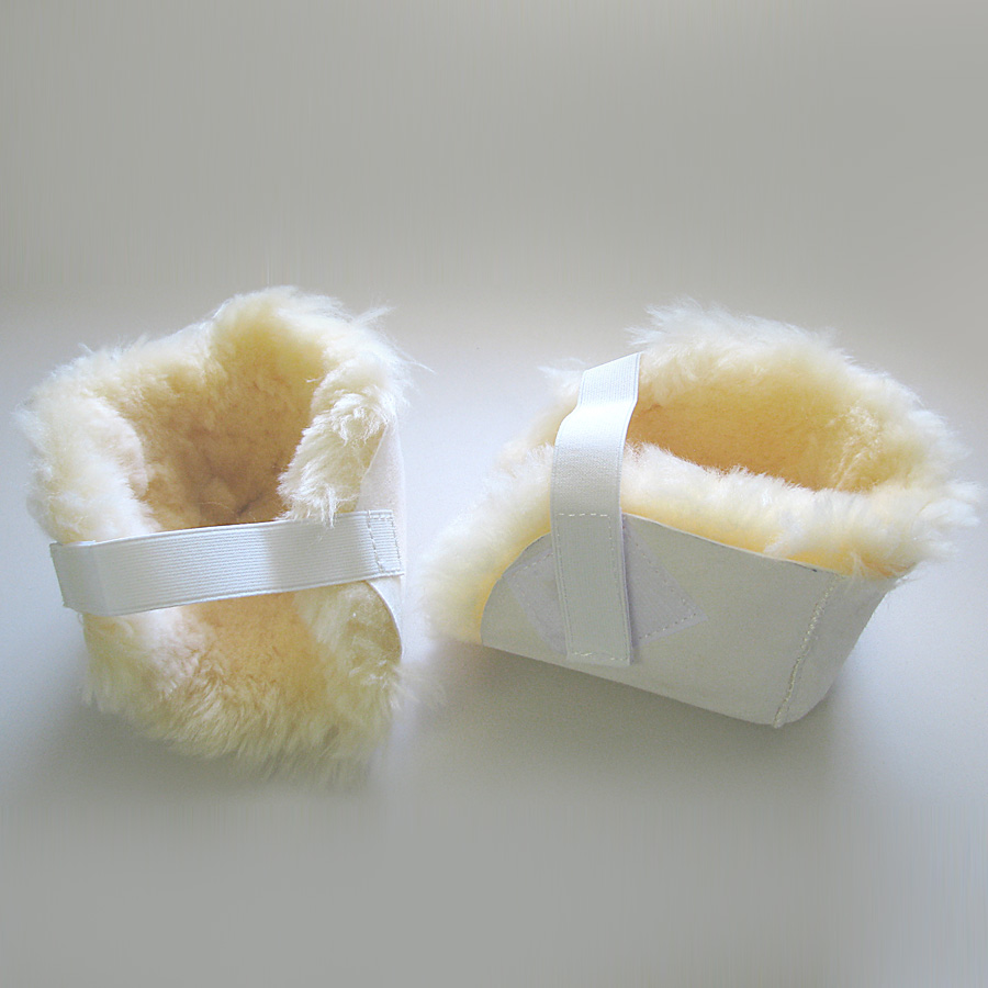 Prevent bed sores on your heels and elbows with these cozy medical sheepskin protectors. Attaches around the heel or elbow with a hook & loop strap for a snug fit. Made from dense shearling sheepskin. Fully hand-washable at low temperatures. Air dry.